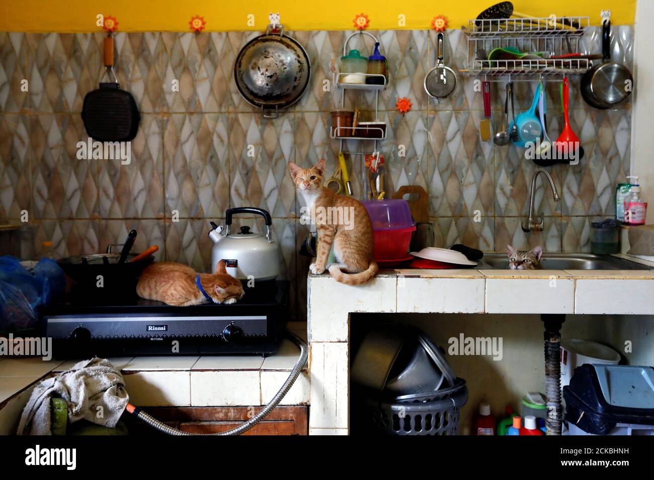 Cats are pictured in the kitchen of a cat shelter called "Rumah - rumah kucing images