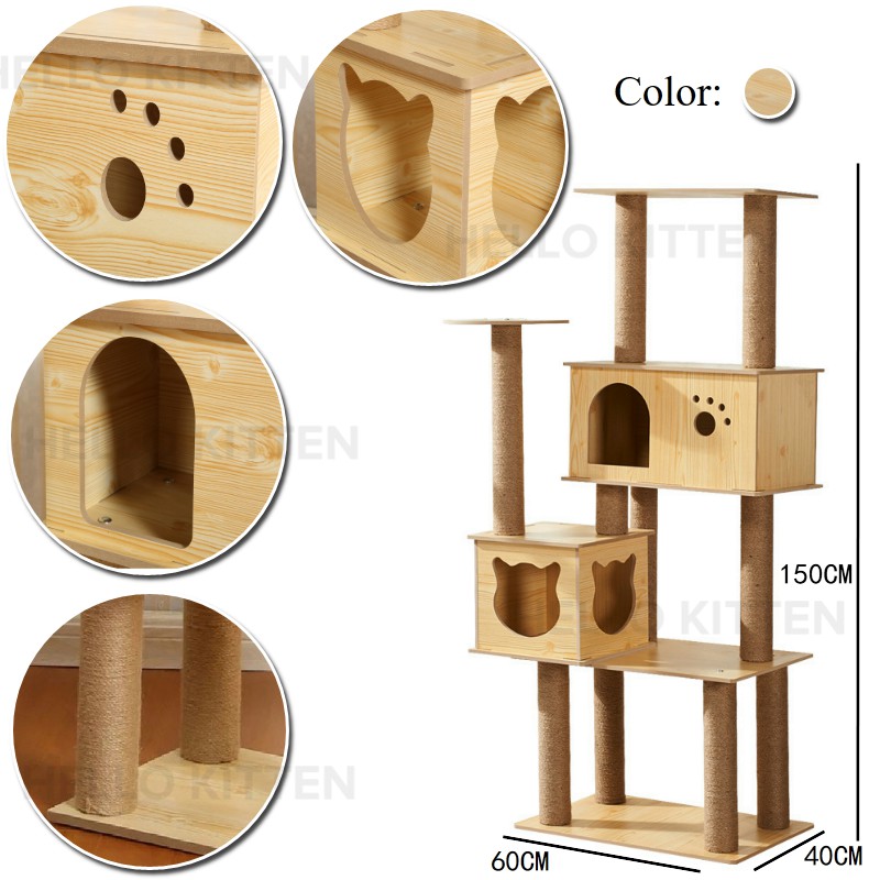 Buy Premium Large Cat Tree House Wood Cat Condo Bed Scratcher - rumah kucing papan plywood